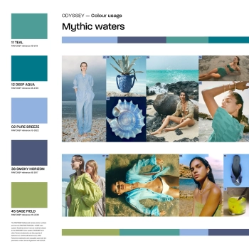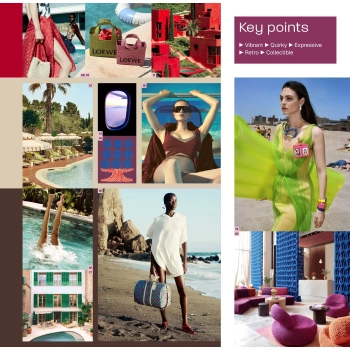 Selkeä Pantone-koodattu trendivärikooste. Neljä trenditeemaa,...