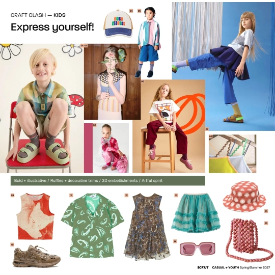 This is a trend report for relaxed mens- and womenswear, now also for childrenswear and youth. The trends are presented in six different themes including colour palettes, mood boards, runway, styling, details, accessories and prints.