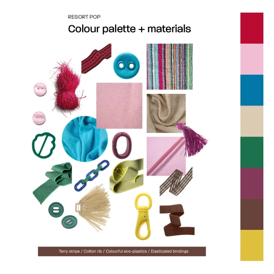 Available as a fully digital product or a combination of print and digital. The COLOUR+CONCEPT hard-copy comes with fabric swatches for all trends and a full set of all the colours for the season with references to Pantone FHI system. The book also includes a download link to a PDF copy and all the individual image files for internal mood-board and presentation use.